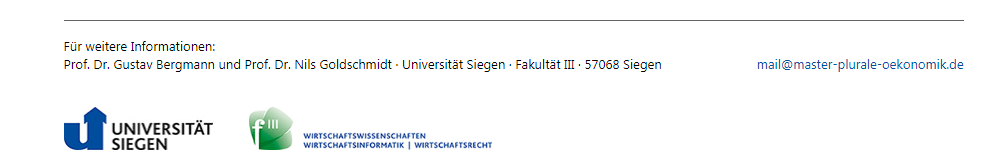Und bei der Internetseite des Studiengangs „Plurale Ökonomik“ der Universität Siegen (https://plurale-oekonomik-siegen.de/), Mitglied im Netzwerk Plurale Ökonomik: