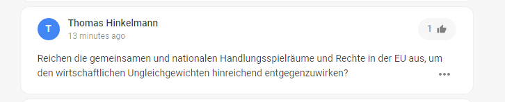 Gemeldet hatte ich mich übrigens beim Freitagsgespräch mit Olaf Scholz zum Thema Europa auch noch. Bin aber nicht dran gekommen.