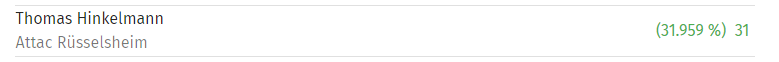 Na ja, gewählt wurde ich auch dort nicht. 🙂 Aber immerhin gab es ein paar Stimmen. Wenn auch ohne Gegenkandidat. Und der Abstand zum Vorletzten war auch nicht mehr so groß.